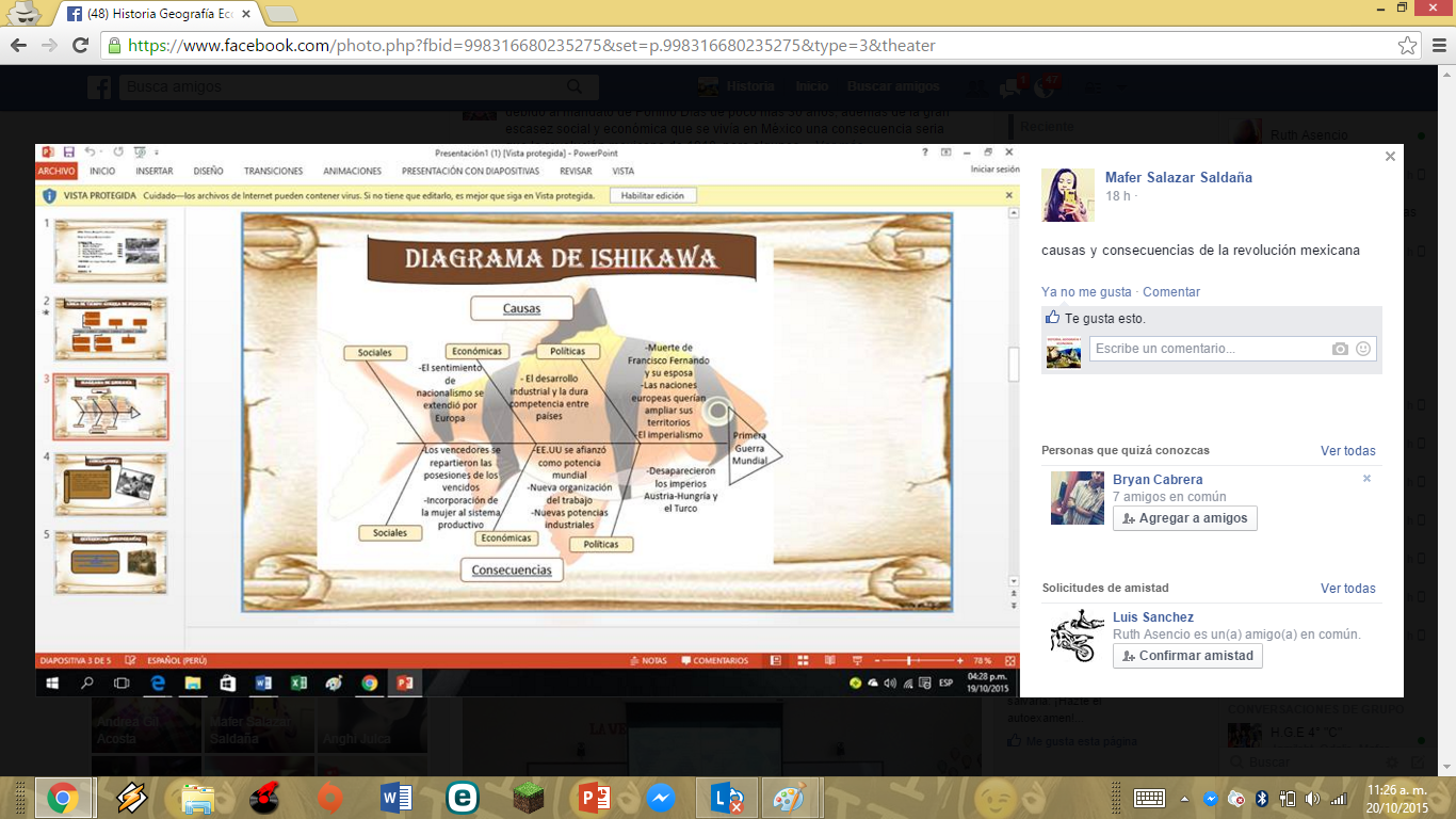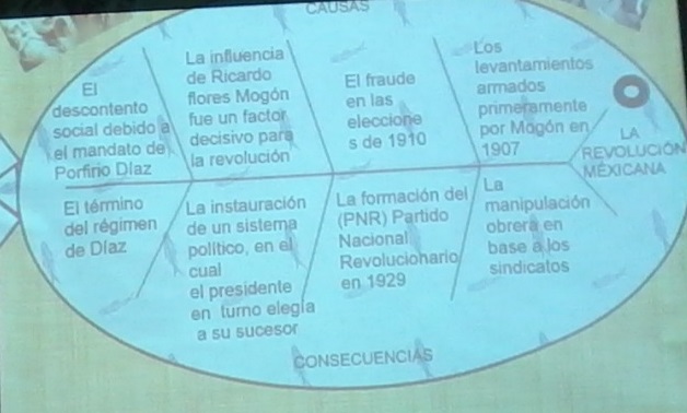 ~Los organizadores visuales empleados son: líneas de tiempo, diagramas de Ishikawa sobre las causas y consecuencias